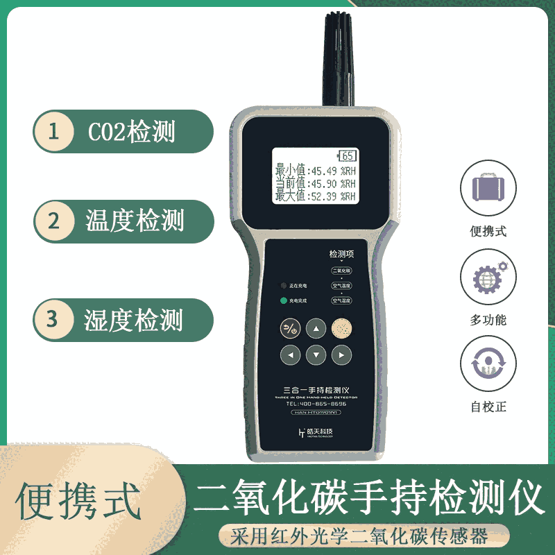 便携式二氧化碳检测仪,支持二氧化碳检测,温度检测,湿度检测-安徽皓天智能环境设备科技有限公司发布日期:2022-3-2